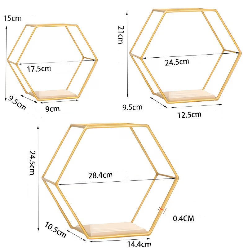 Mensola da parete decorativa in metallo color oro 3 pz