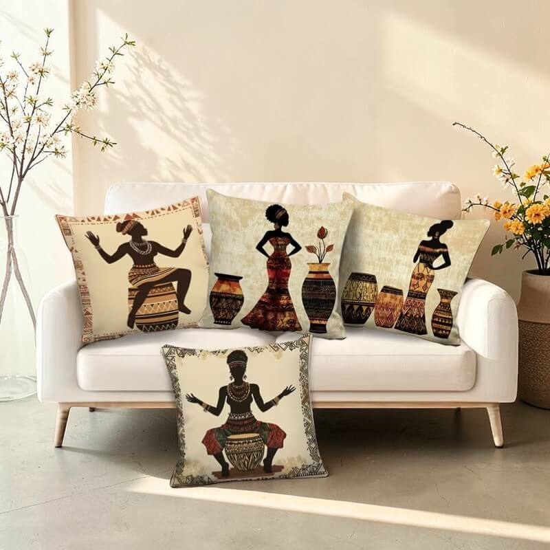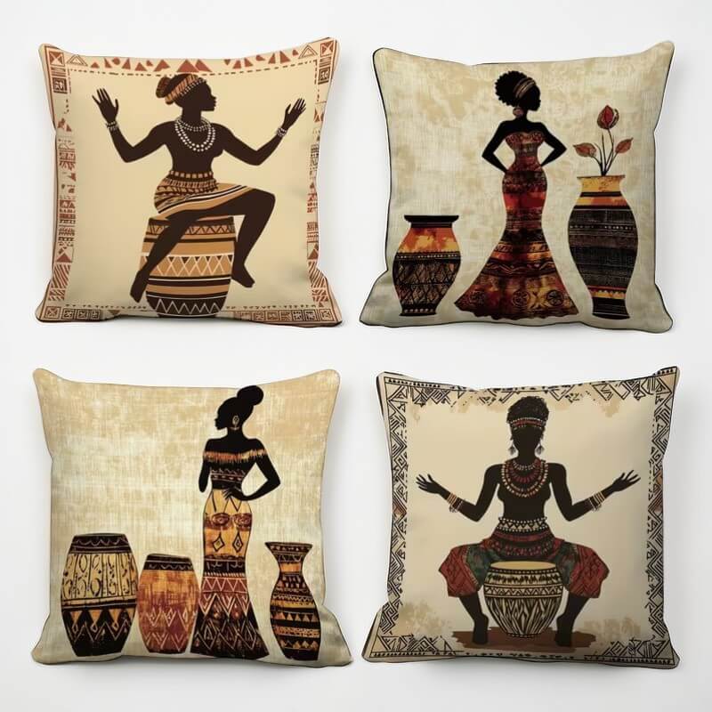 Set di 4 federe con donne africane