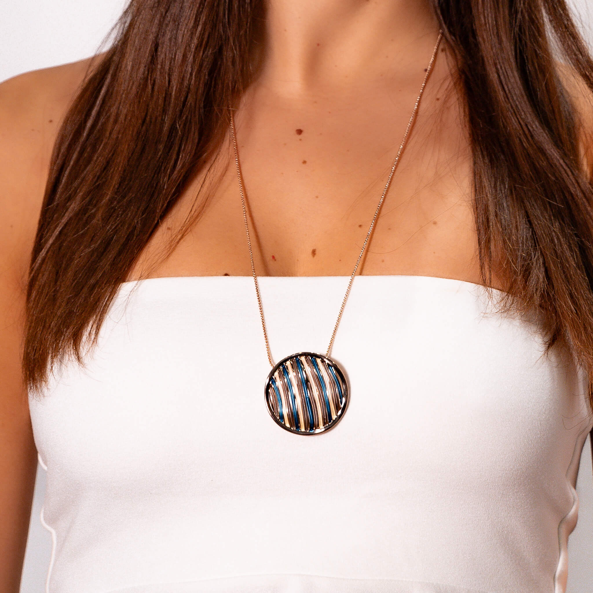 Collana in Minerva, realizzata a mano, con pittura a smalto colorato. Il materiale e il motivo speciali e di alta qualità lo rendono unico e senza tempo.